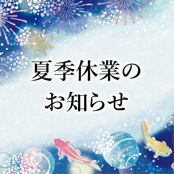 夏季休業のお知らせ 2025.07.01 8月 9日(土)~ 8月11日(月) 8月13日(水)~ 8月17日(日) 上記期間休業とさせて頂きます。 ※ 12日(火)は通常営業 2025 夏季休業のお知らせ オーダーシステム eN のお知らせ 一覧に戻る GW休業のお知らせ